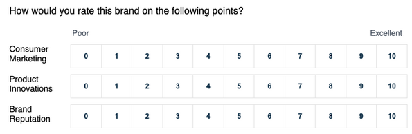 • You can use up to 10 Rating questions per Matrix Group widget.