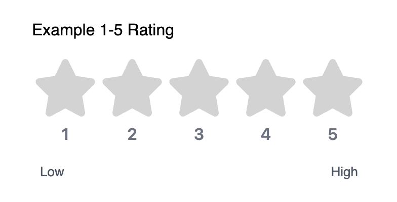 The Rating widget is used to measure any question that requires a scale to answer. This question is best used in Transactional Surveys, at times where NPS, CES, or CSAT methodologies do not apply.