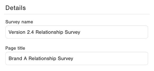 • Page title: The Page title is the (external) text that appears in the browser tabs while on the live survey. This setting is available for Campaign Surveys and Direct Link Surveys.