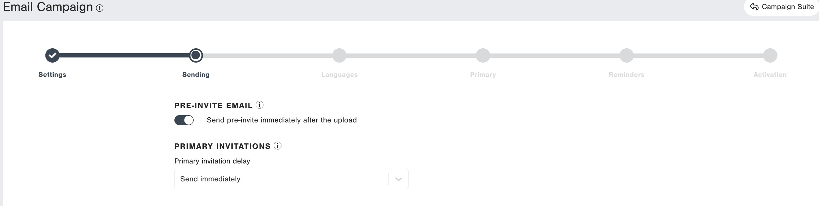 - Primary Invitations delay:Send immediately, 1 hour, 8 hours, 1 day, 3 days, 7 days