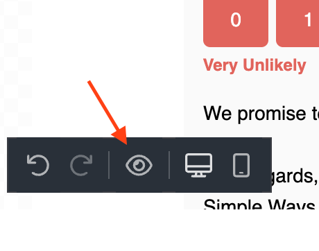 To preview the template you just created click on the “eye” button at the bottom left. You can toggle between Desktop, Tablet, and Mobile view to mimic the responsiveness of your Email template.