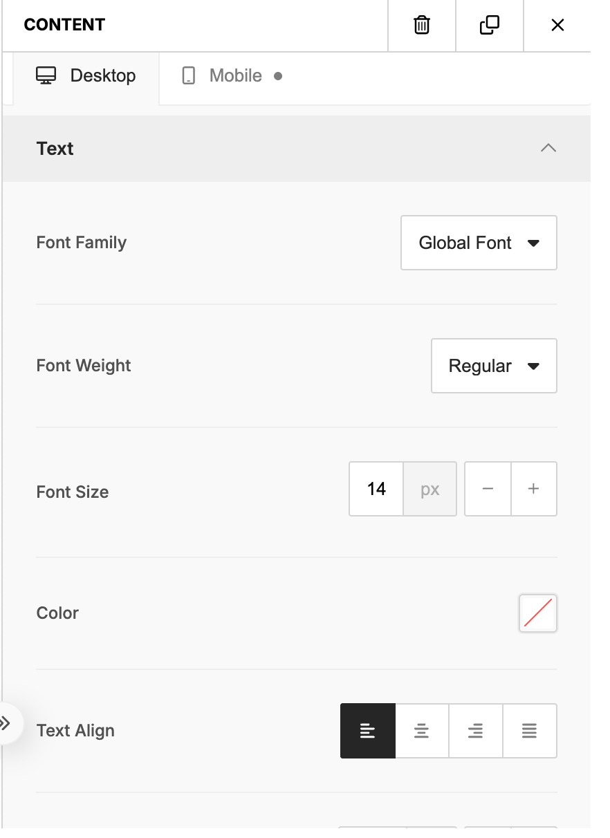 Edit font family, weight and size, color and text alignment